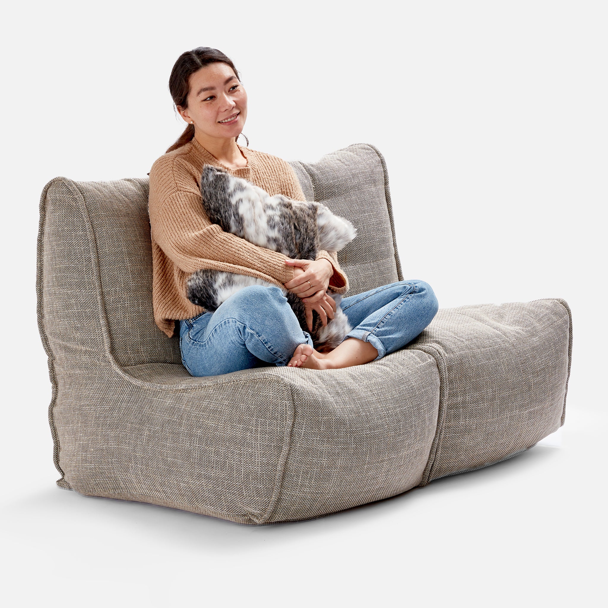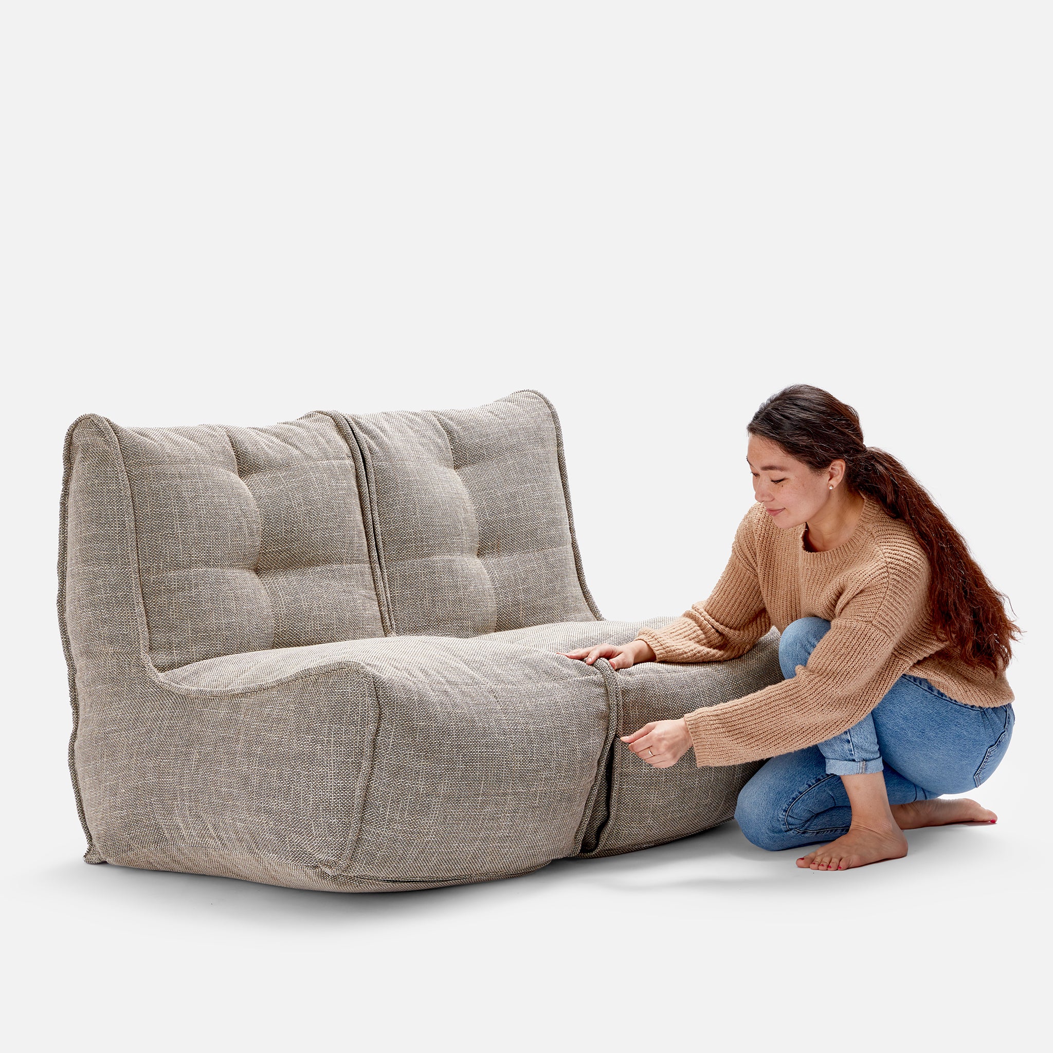The Eco Weave twin couch can be zipped in two very nice single-seaters if you need to separate for spare guests. It’s 3 colour combination means that you can have the lightness of creamy colours without the fear of getting your couch dirty. Even if you do, our Funnelweb™ system allows you to quickly unfill the cover and wash.