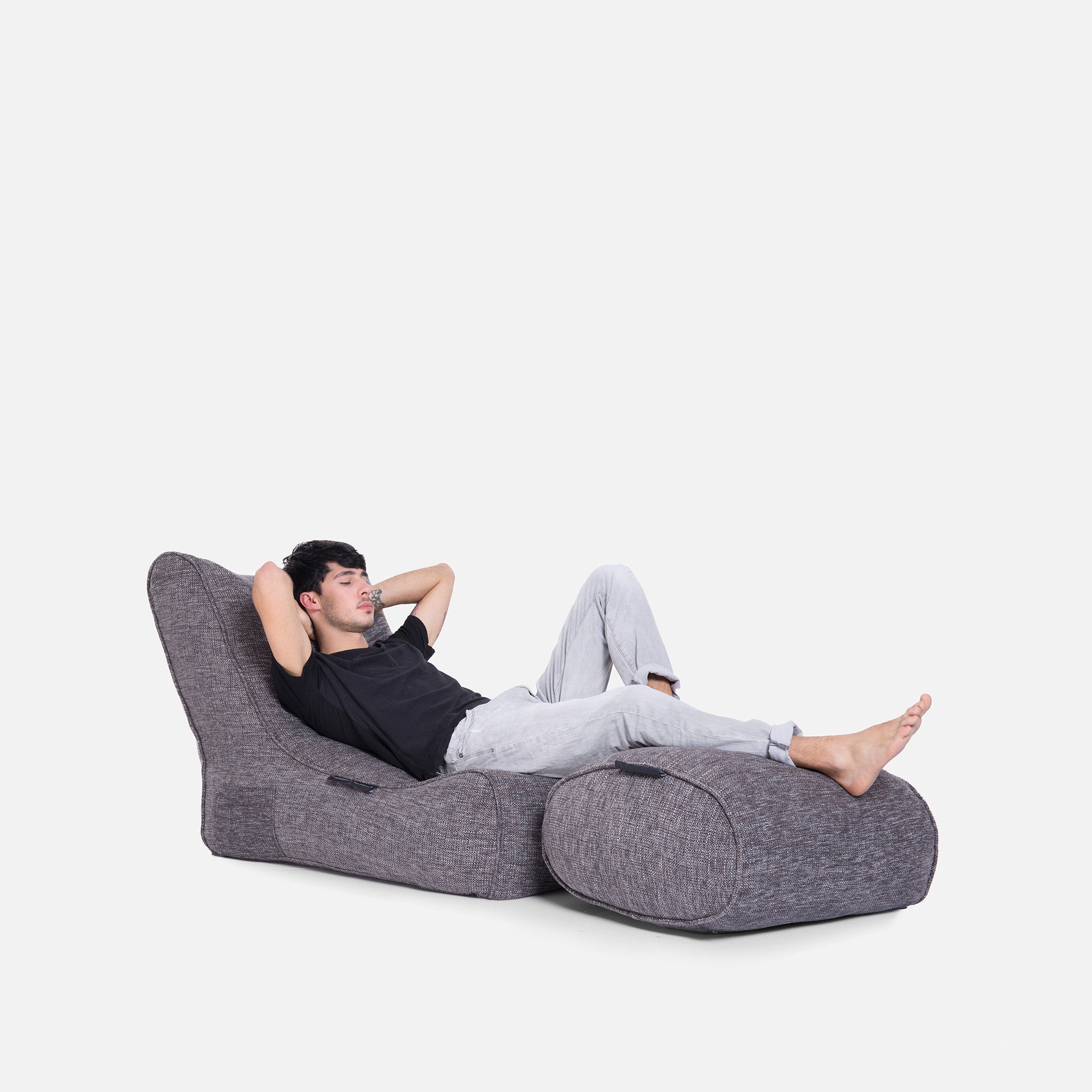 Dieses zweiteilige Set aus dem luxuriösen, grauen Premium-Stoff von Ambient Lounge ist der Inbegriff von Entspannung. Es ist die perfekte, preisgünstige Kombination für ein schwereloses Heimkinoerlebnis. Grau und Silber sind in vielen modernen und stilvollen Interieurs absolut angesagt, und dieser Stoff besticht durch Tiefe, Robustheit, angenehme Haptik und eine hervorragende Ästhetik. Wie ein britischer Architekt kürzlich bemerkte: „Das ist kein einfaches oder langweiliges Grau, sondern hat wunderschöne helle Akzente und einen sehr, sehr dezenten Hauch von metallischem Silber, der dieses Set weit über alles hinaushebt, was ich bisher bei Sitzsäcken gesehen habe. Es sieht sehr edel aus und fühlt sich auch so an.“ Machen Sie sich bereit für Entspannung der Extraklasse mit dem luxuriösen, grauen Chaiselongue-Set von Ambient Lounge Premium.