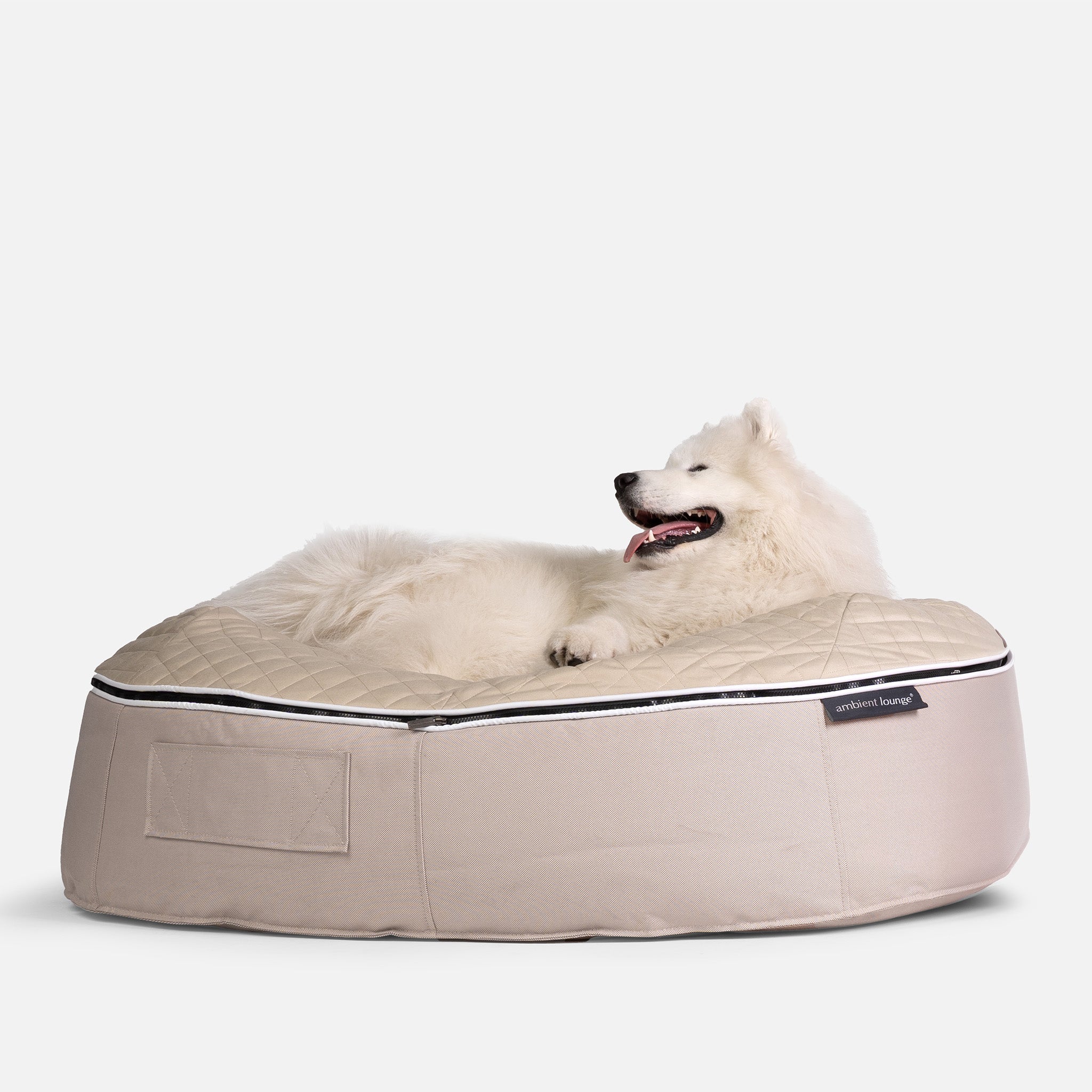 Endlich ist es da! ... Das weltweit beliebteste Hundebett von ambient lounge® gibt es jetzt auch als temperaturregulierende, wasserdichte Version mit gesteppter Oberfläche – ideal für Hunde, die es im Schlaf etwas kühler mögen. Diese Premium-Betten bieten Ihren Vierbeinern nicht nur höchsten Komfort, sondern sehen auch richtig gut aus.