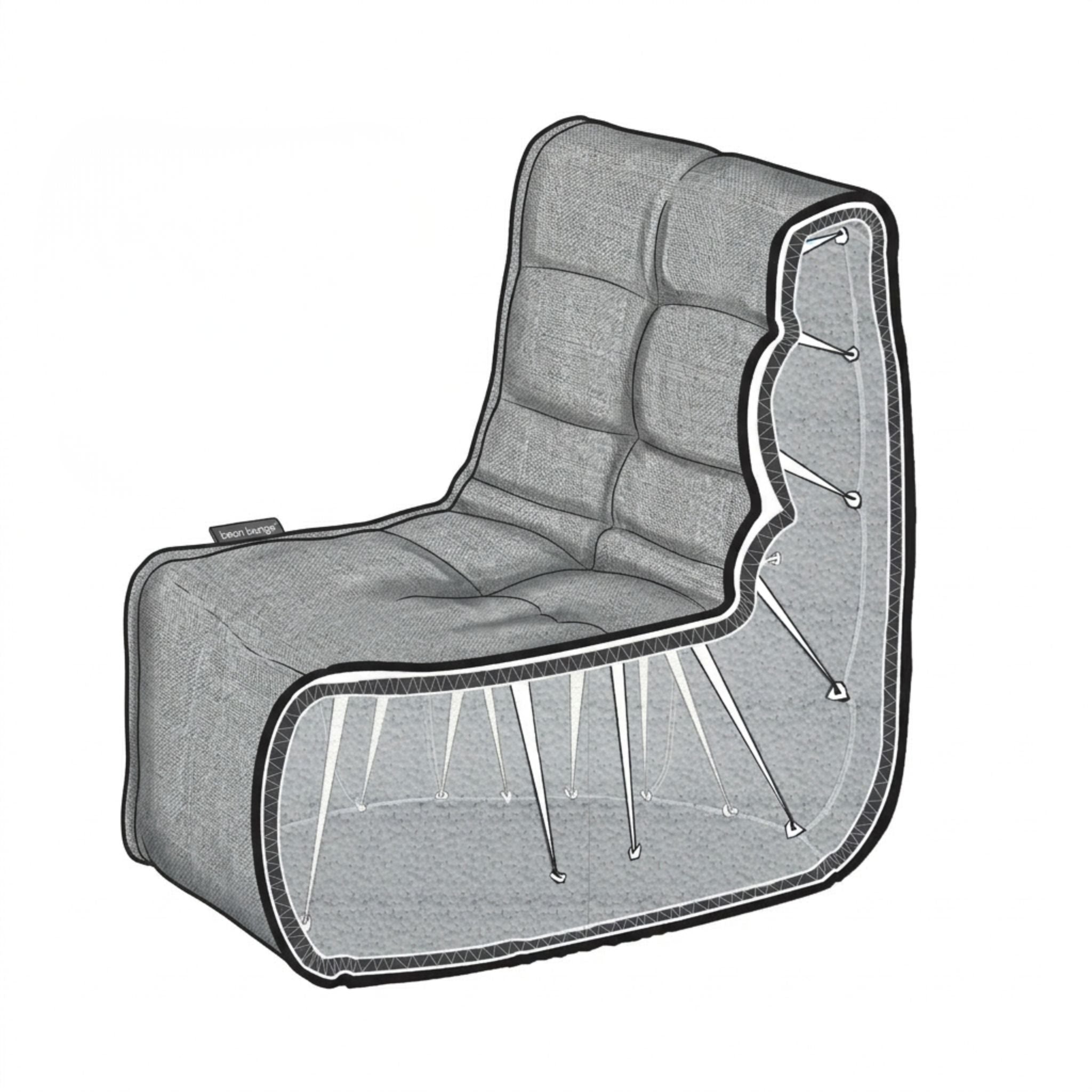 Unlike ordinary bean bags, the Evolution Sofa features a built-in elastic structural system that gently holds the backrest in shape.